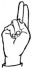 На ћирилици написано БУДИМИР КОВАНЏИЋ састоји се из 15 слова [?]. Исписано ћириличном једноручном азбуком за глувонеме: